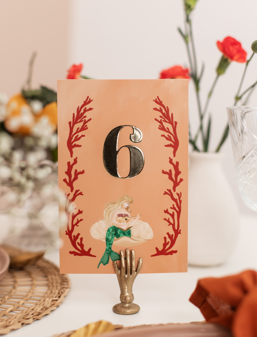 Tafelnummers volledig passend bij de collectie met de zeemeermin en het zeethema.