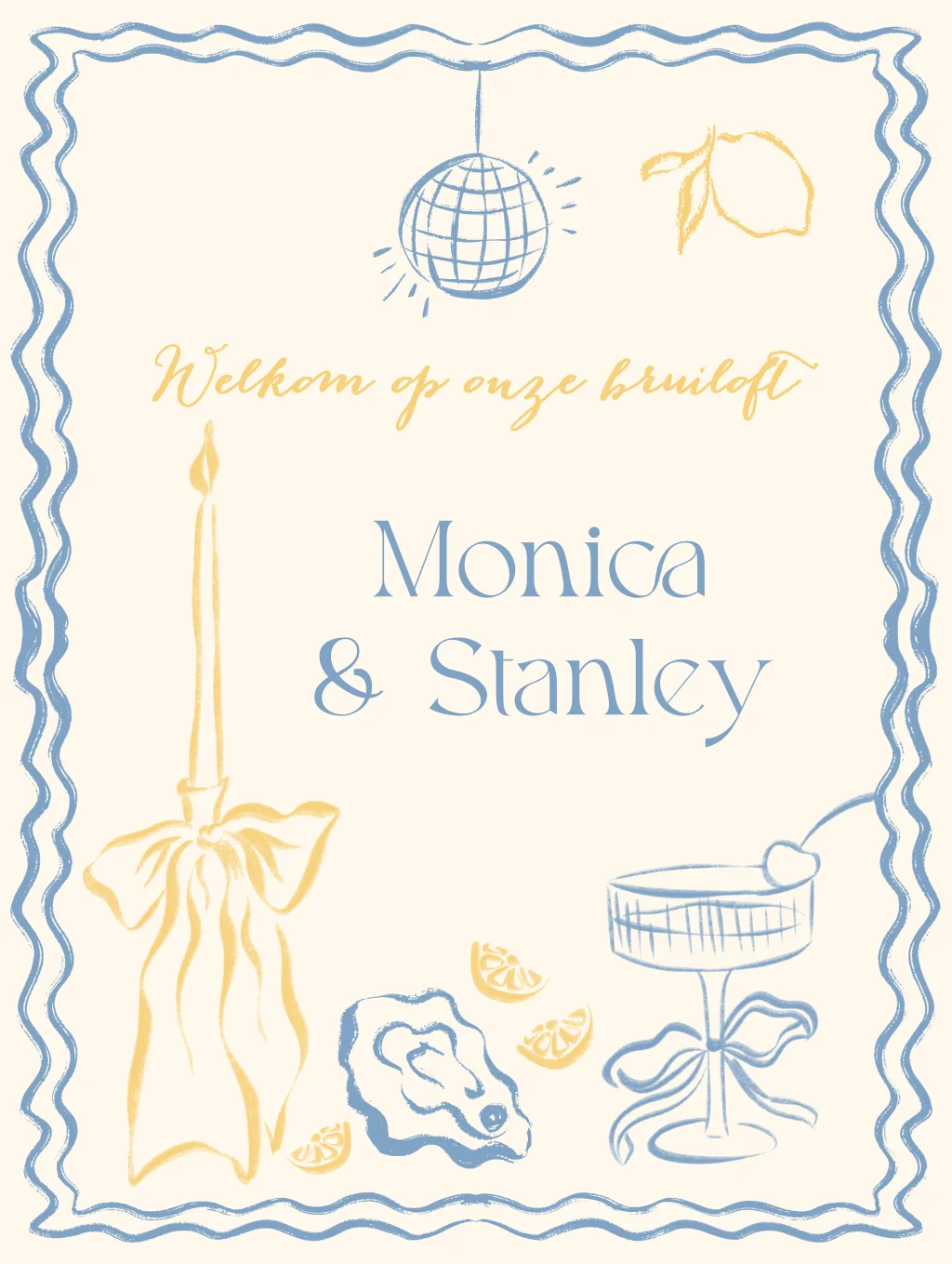 Heet jouw gasten in stijl welkom op jullie bruiloft. Dit bord sluit perfect aan bij het thema en de collectie beach blauw.