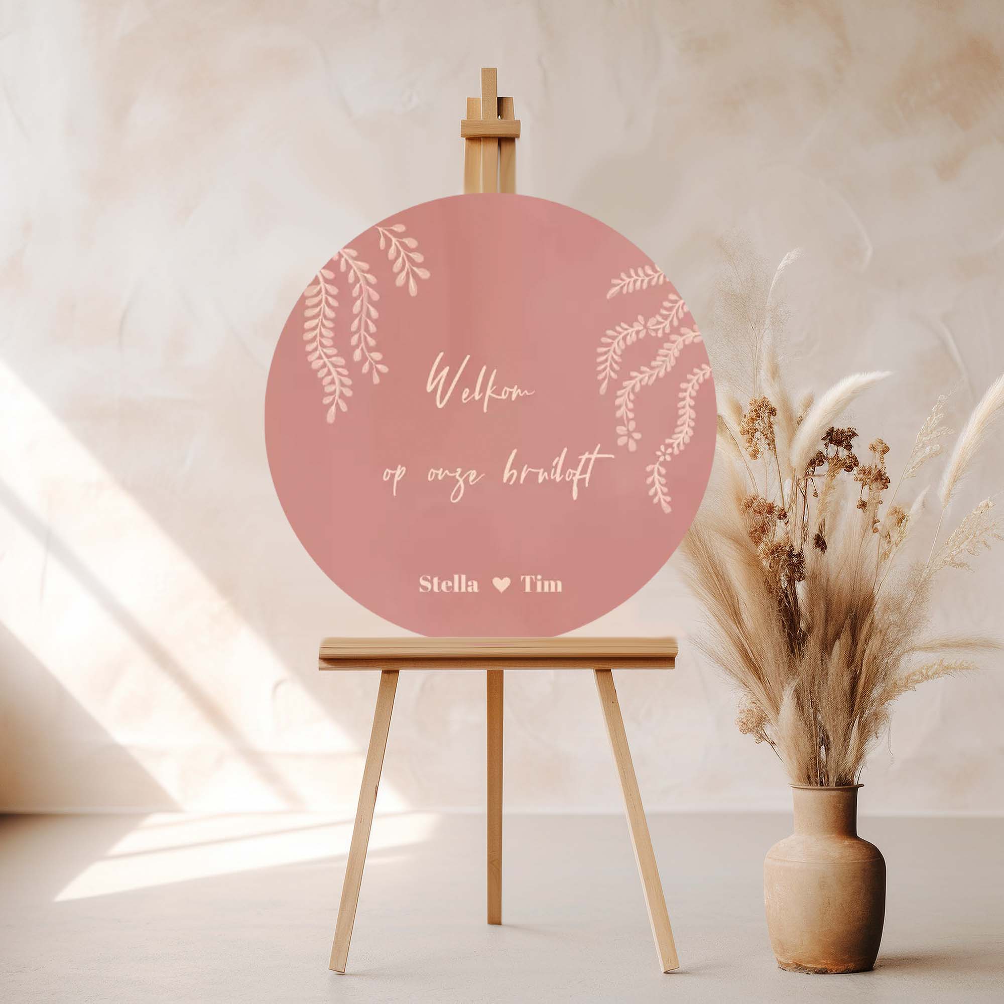 Een minimalistisch bruiloftbord om jouw gasten te verwelkomen op jullie grote dag. Het hoort bij de collectie met de boom.