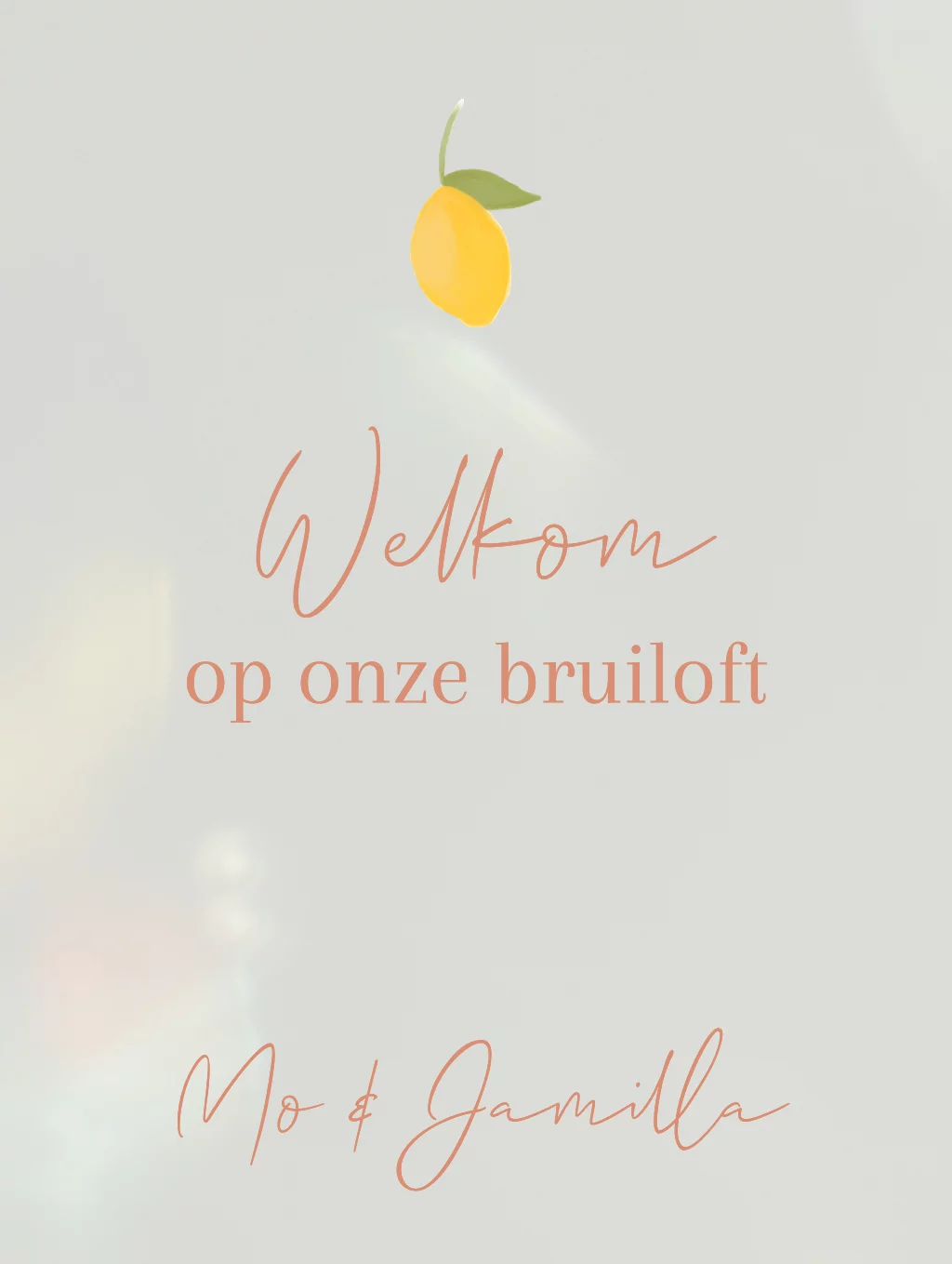 Een bruiloftsbord op plexiglas. Hiermee is het bord doorschijnend.