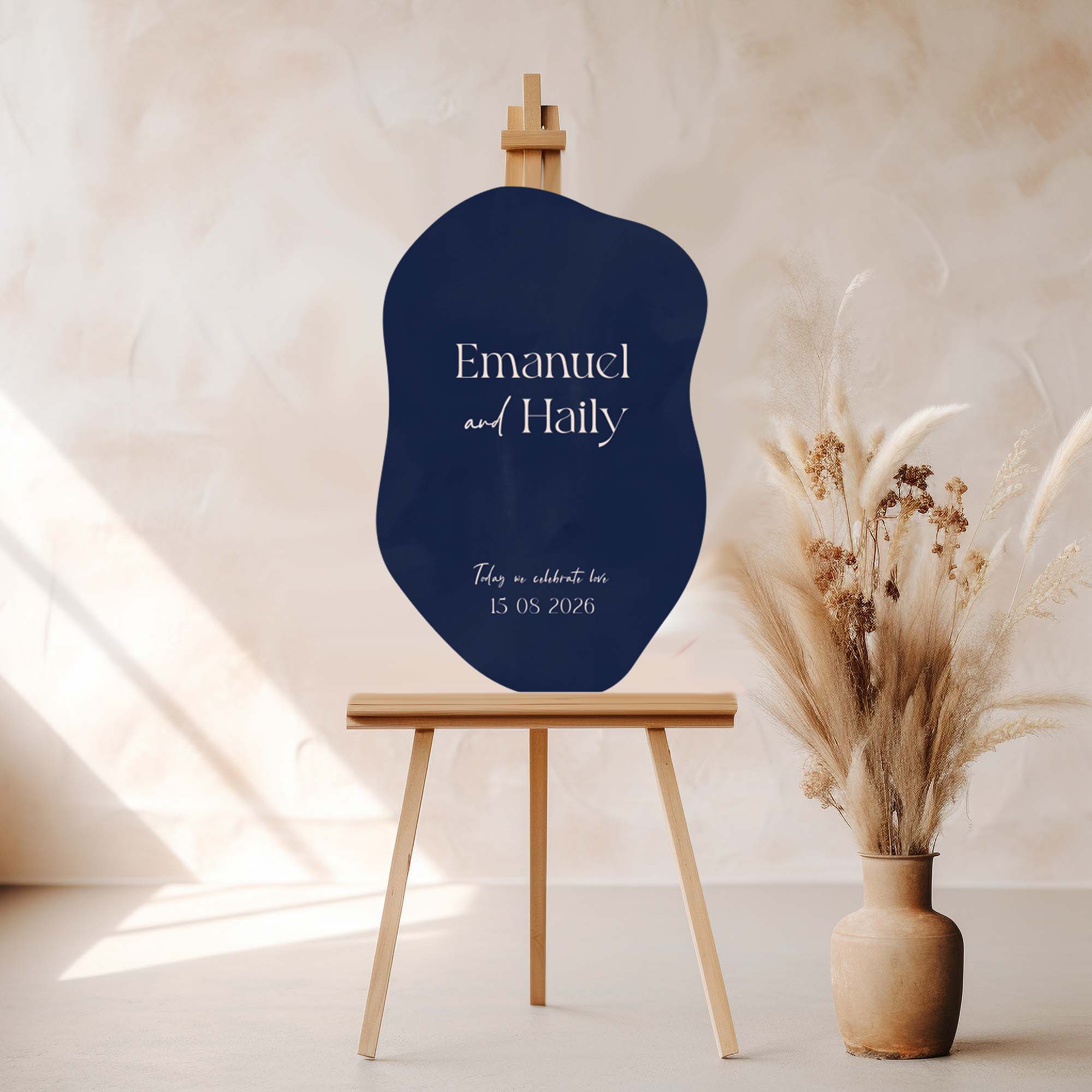 Verwelkom je gasten op jouw bruiloft met een bijpassend welkomstbord. Met deze organische vorm heb je een heel origineel bord.