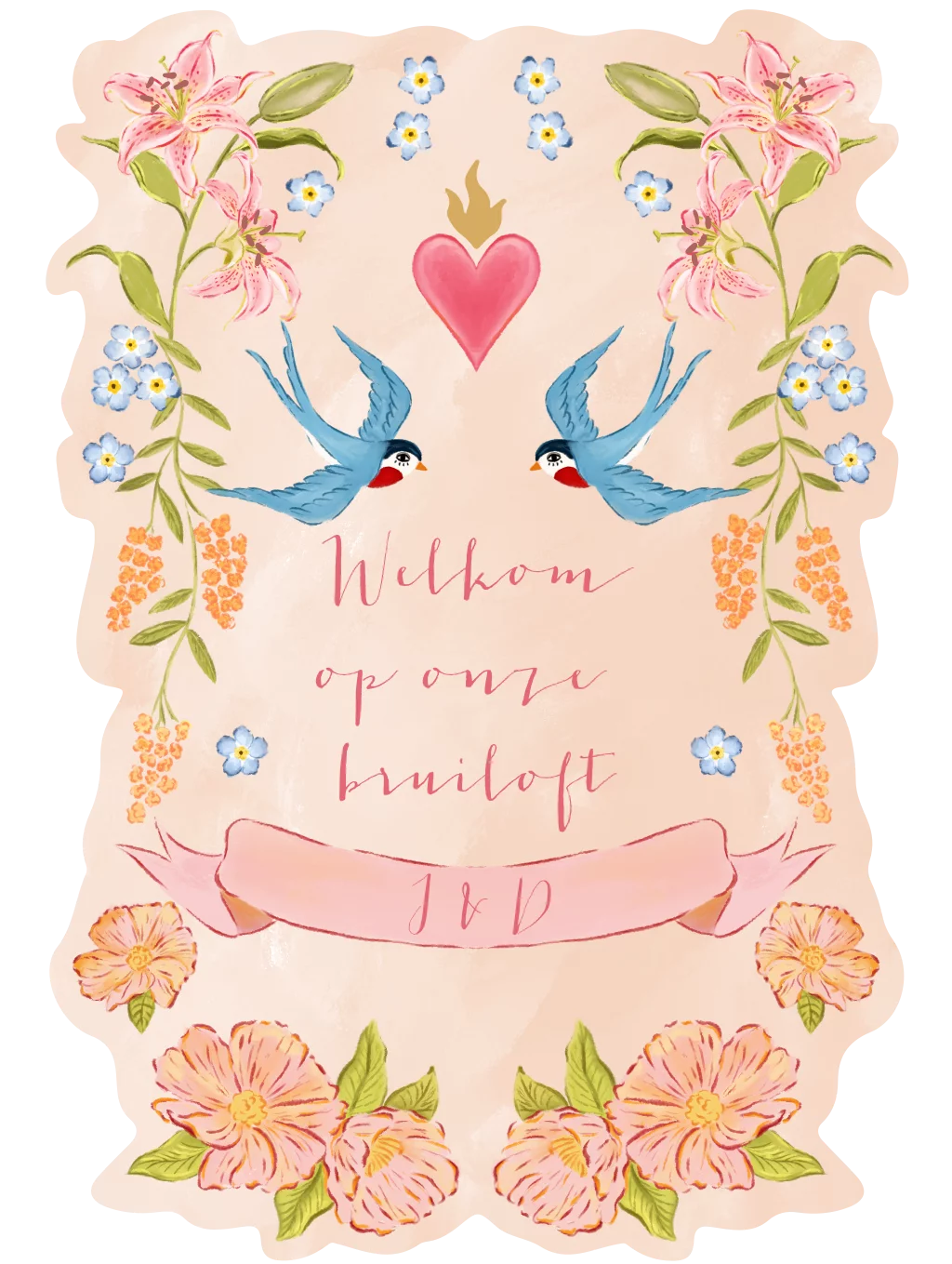 De boerenzwaluw omringd door kleurrijke bloemen.