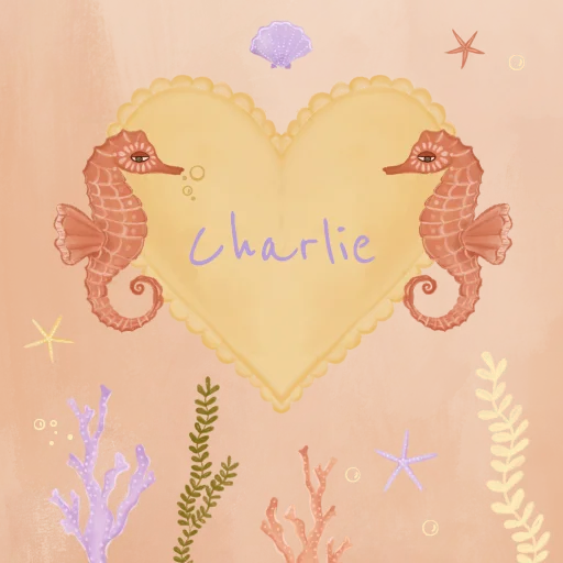 Sierlijke zeepaardjes rond een hart omringd met koraal.