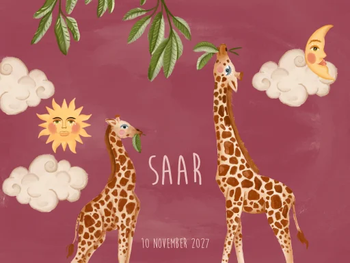 Bewaar de mooiste herinneringen uit de kraamtijd in deze memorybox met schattige giraffen.
