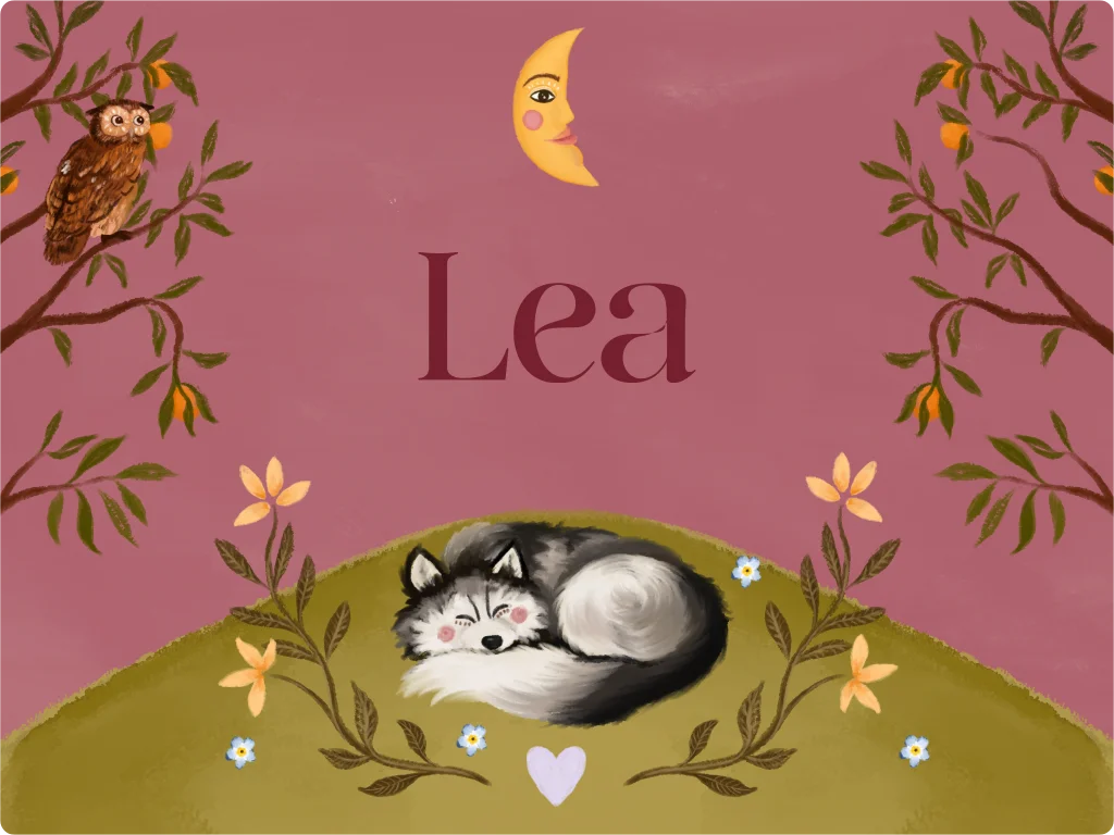 Bewaar de mooiste herinneringen uit de kraamtijd in deze memorybox met een slapend wolfje en een uil.