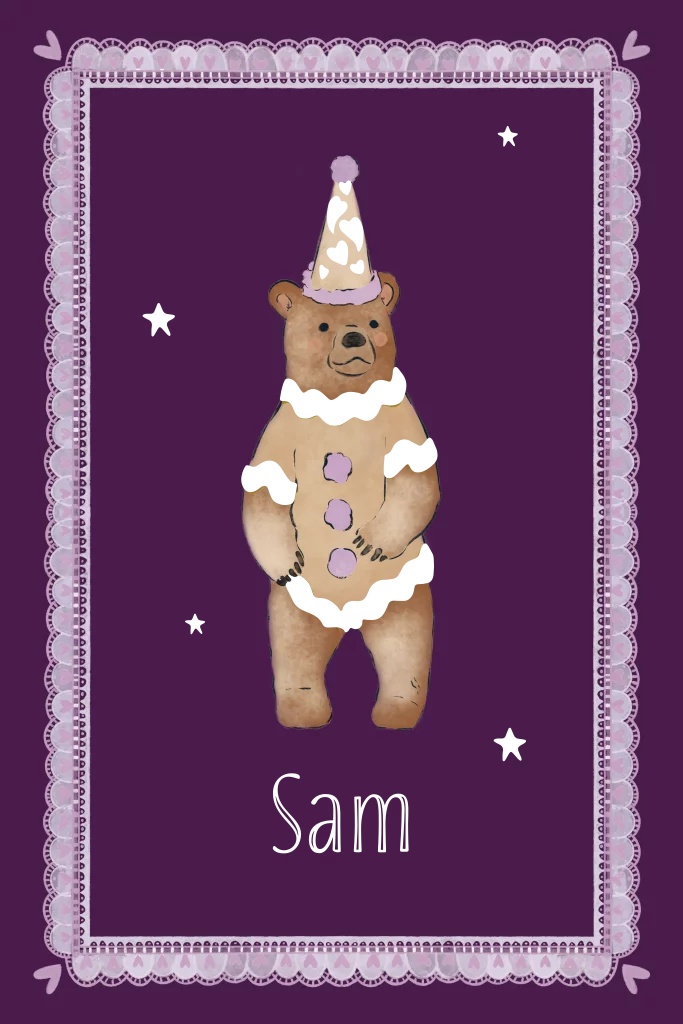 Dit schattige beertje komt zo uit het circus en is een feestelijke poster voor de kamer van je zoon of dochter.