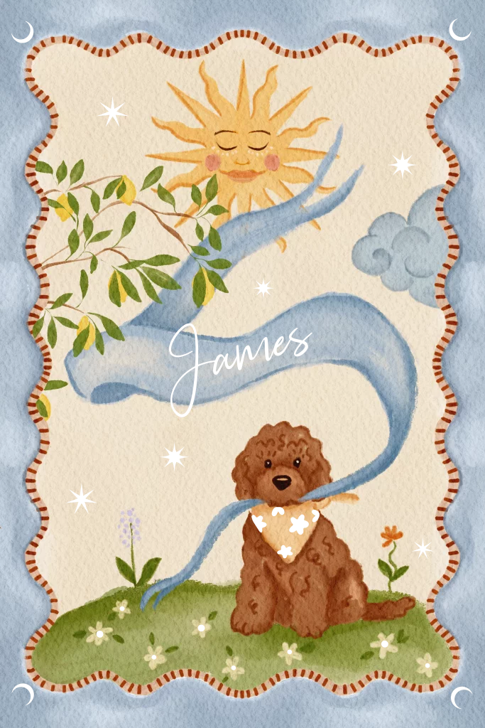Poster Labradoodle en citroenboom blauw