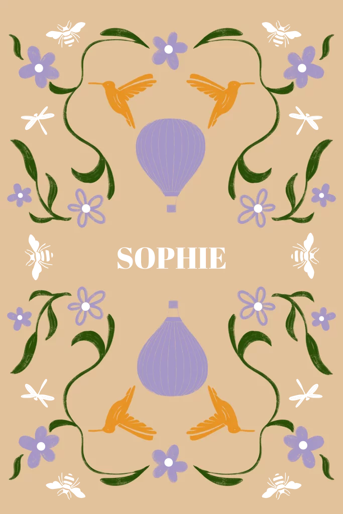 Deze symmetrische poster kenmerkt zich door de luchtballonen en kolibrie. De kolibrie staat in veel culturen symbool voor liefde, geluk en vreugde.