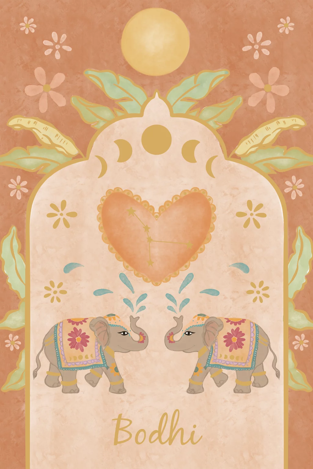 Een raamsticker van het geboortekaartje Indische olifanten in roze kleur. De afmeting van het tuinbord is 40x60 cm.