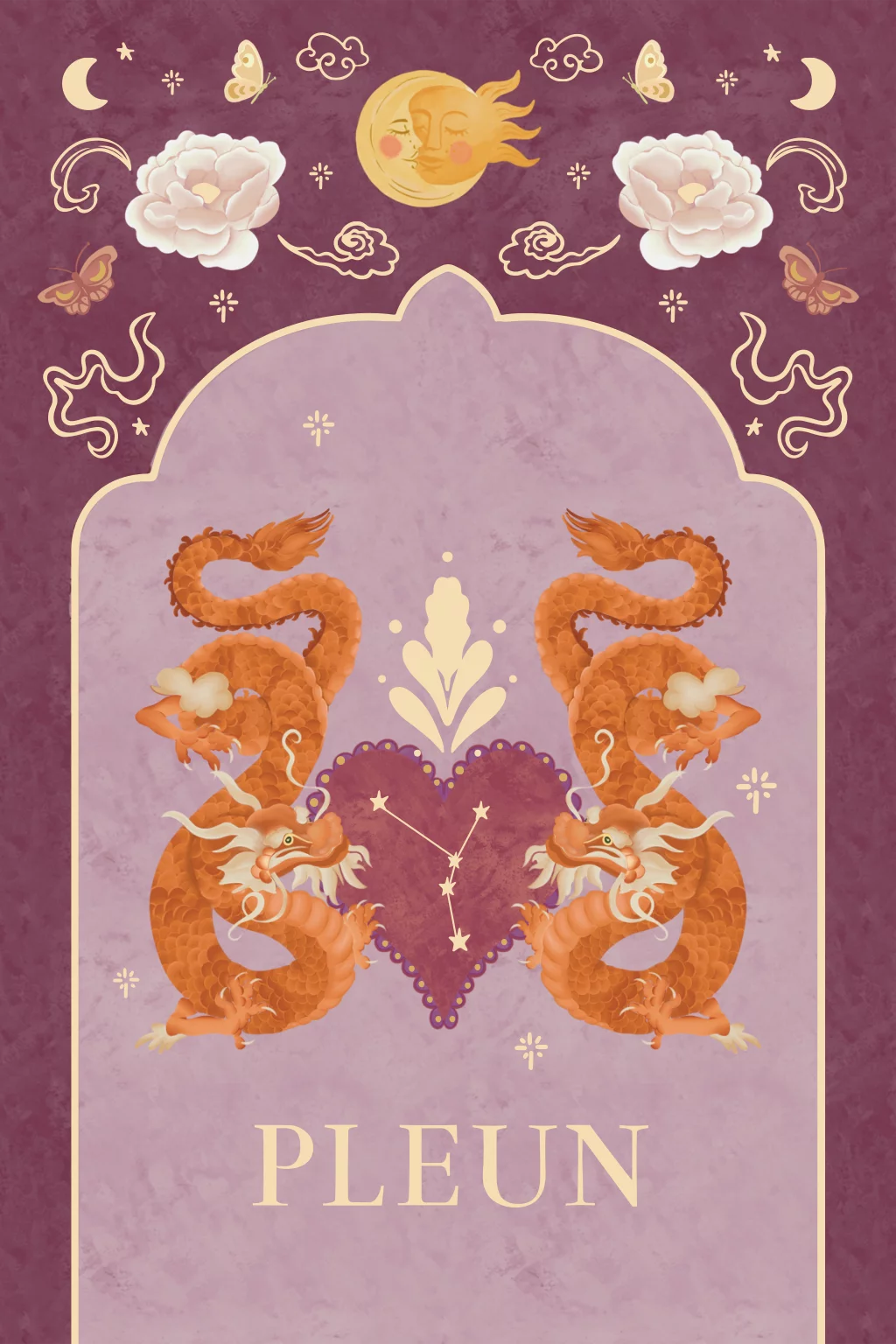 Raamsticker Japanse draken paars 40x60 cm