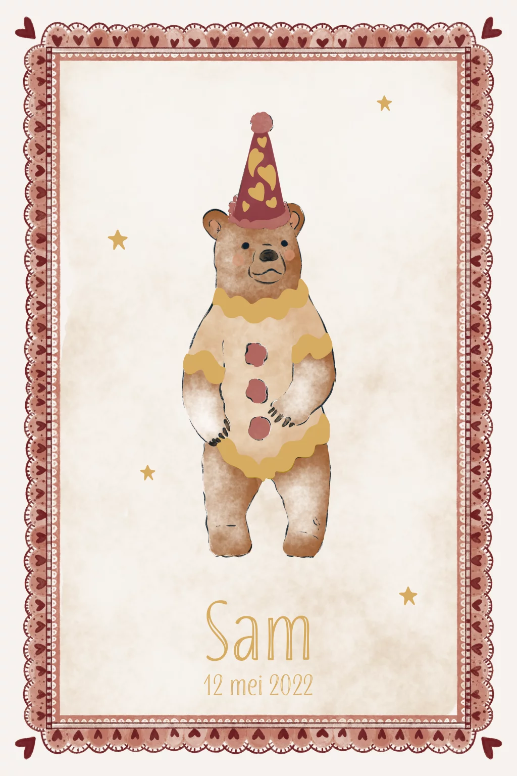 Een tuinbord van dit schattige beertje dat zo uit het circus komt is een feestelijke aankondiging voor de geboorte van je zoon of dochter.