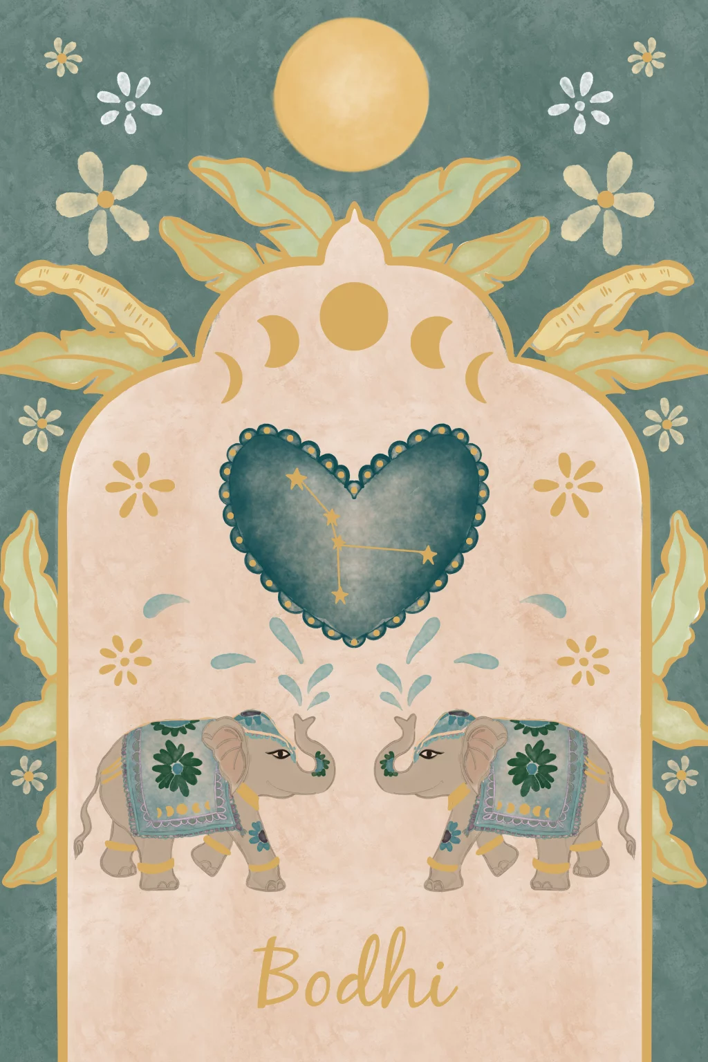 Een tuinbord van het geboortekaartje Indische olifanten in petrol kleur. De afmeting van het tuinbord is 40x60 cm.