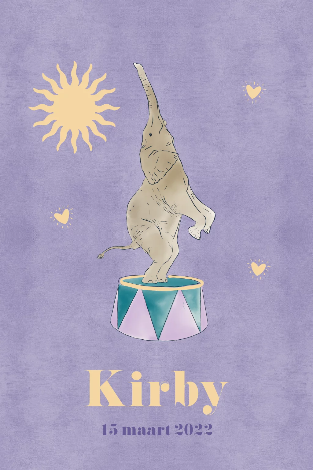 Een tuinbord van een olifant op een circusplateau. De afmeting van het tuinbord is 40x60 cm.