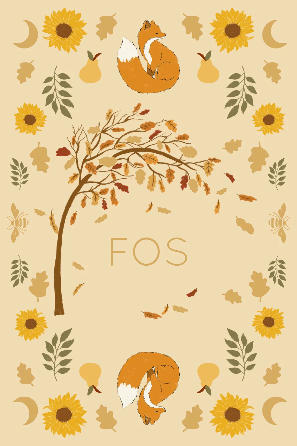 Tuinbord vossen, zonnebloemen en peren 40x60 cm