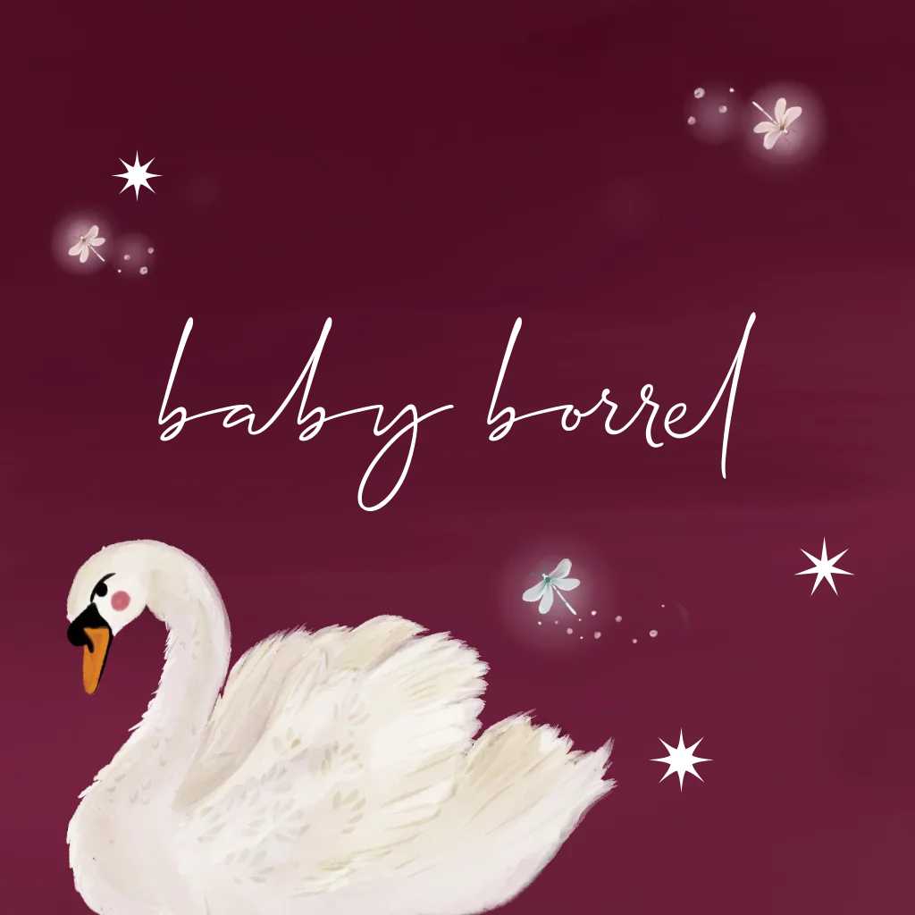 Passend bij het geboortekaartje met de wilde zwanen is er ook een kraamborrelkaartje. Je kunt zelf de kleuren aanpassen. Er is ook een rechthoekige variant beschikbaar.