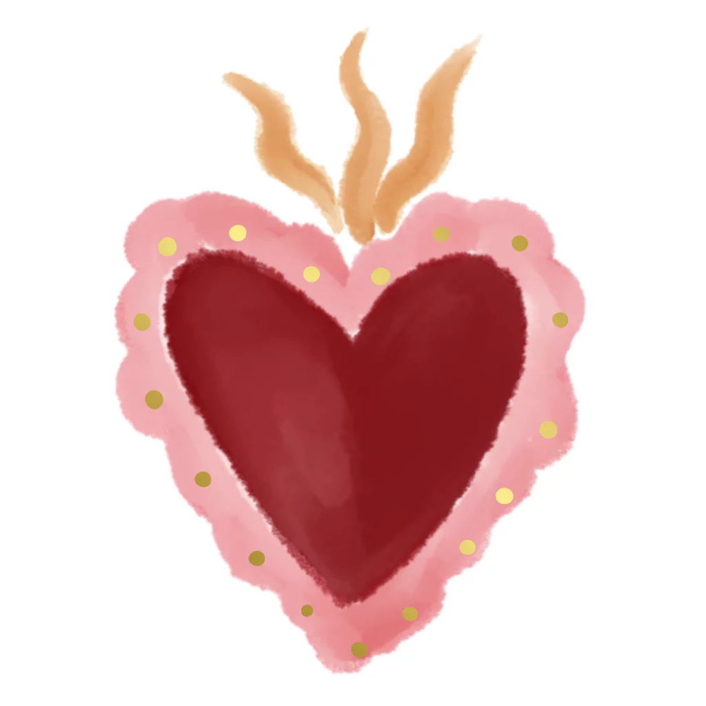 Sluitzegel met een rood met roze hart en kleine gouden details.
