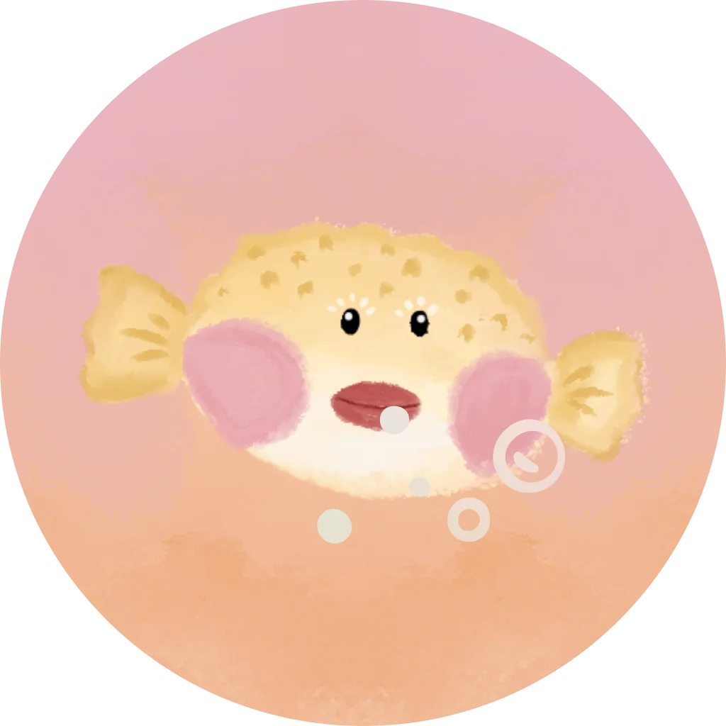 Een kleurrijke sticker met een schattige ballonvis.