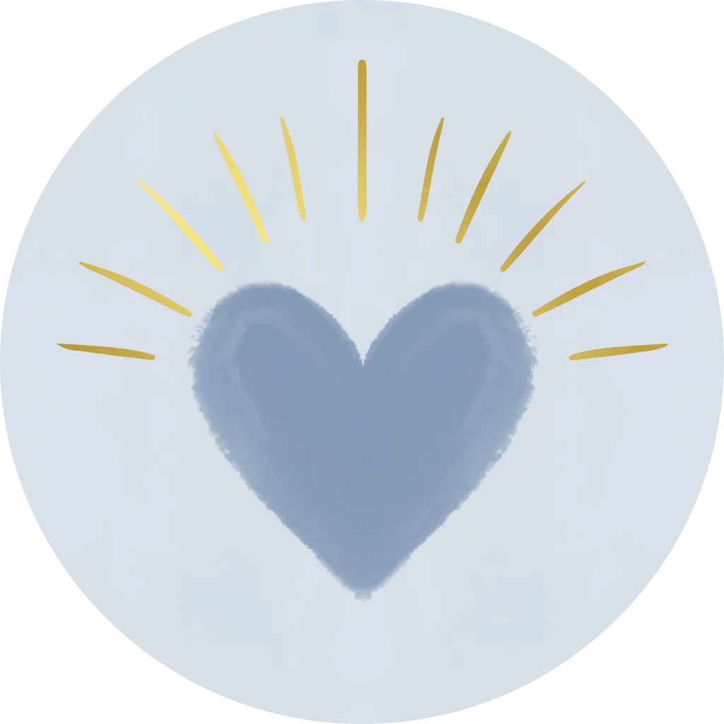 Een minimalistisch ontwerp met een stralend hart met gouden lijnen.
