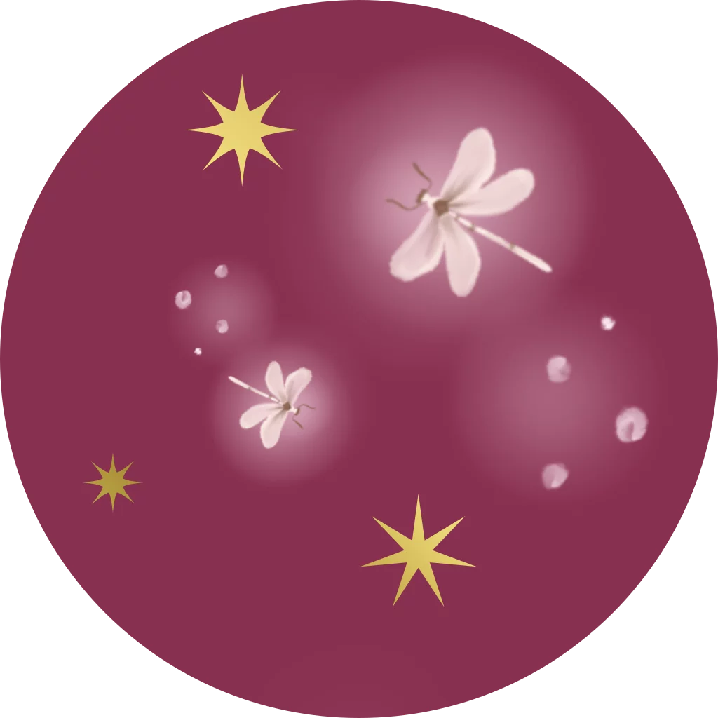 Sluitzegel met libellen op een paarse achtergrond en gouden details.