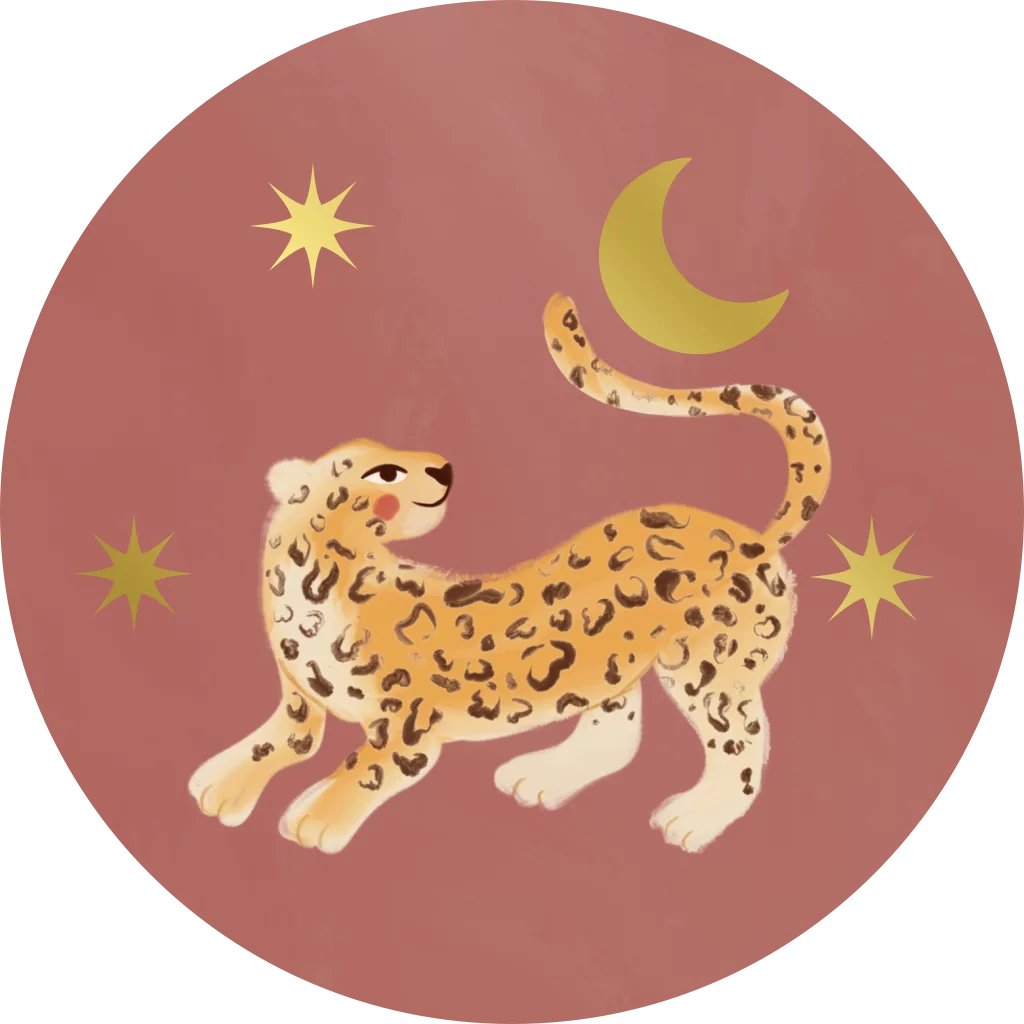 Sluitzegel met een luipaard met maan en sterren in folie.
