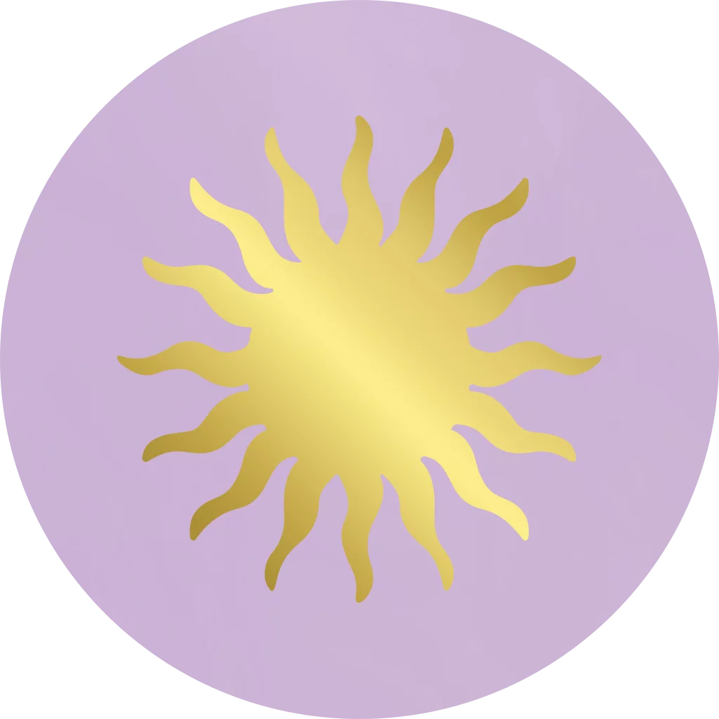 Sluitzegel met een zon in folie en een lila achtergrond.