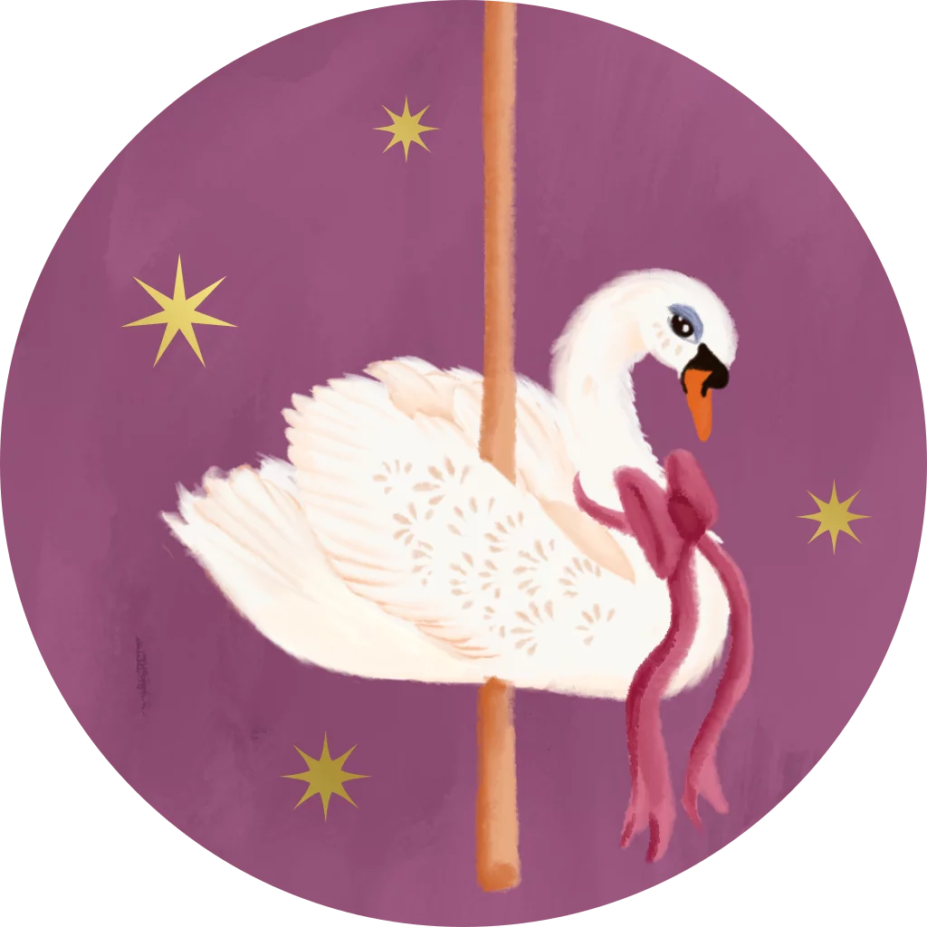 Een roze sluitsticker met een zwaan passend bij de carrousel.
