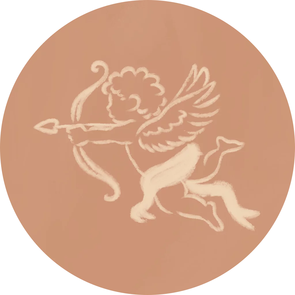 Sluitzegel met bruine achtergrond en een beige engel cupido