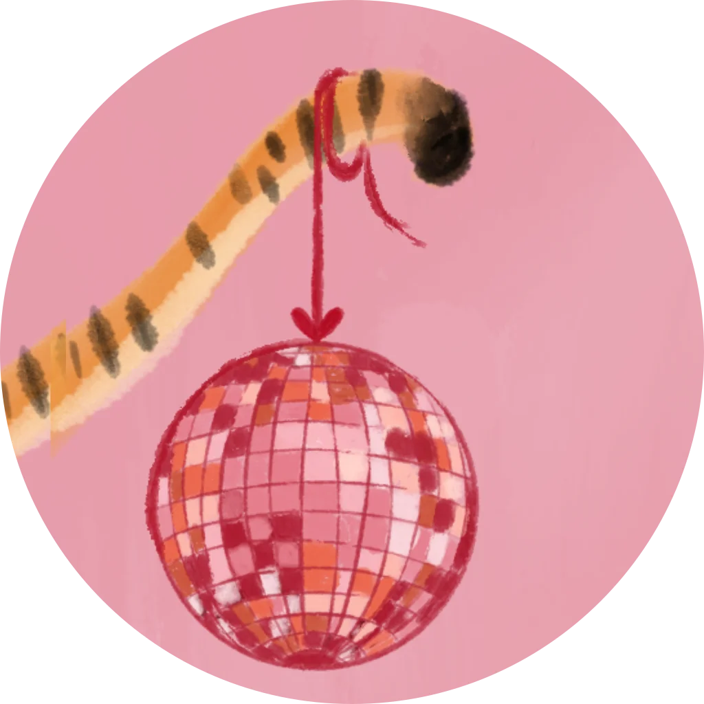 Sluitzegel met roze achtergrond en tijgerstaart met een discobal.