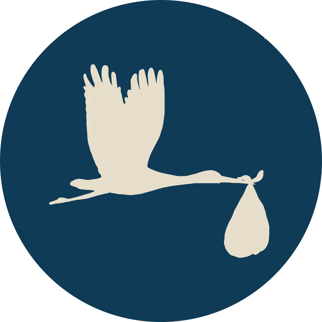 Sluitzegel met beige ooievaar en blauwe achtergrond.