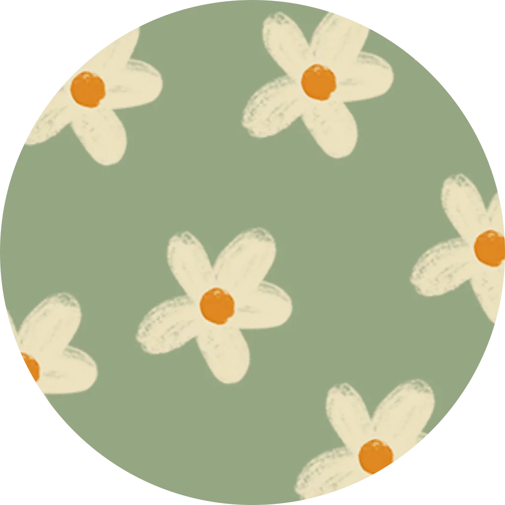 Sluitzegel met lichtgroene achtergrond en beige bloemen.