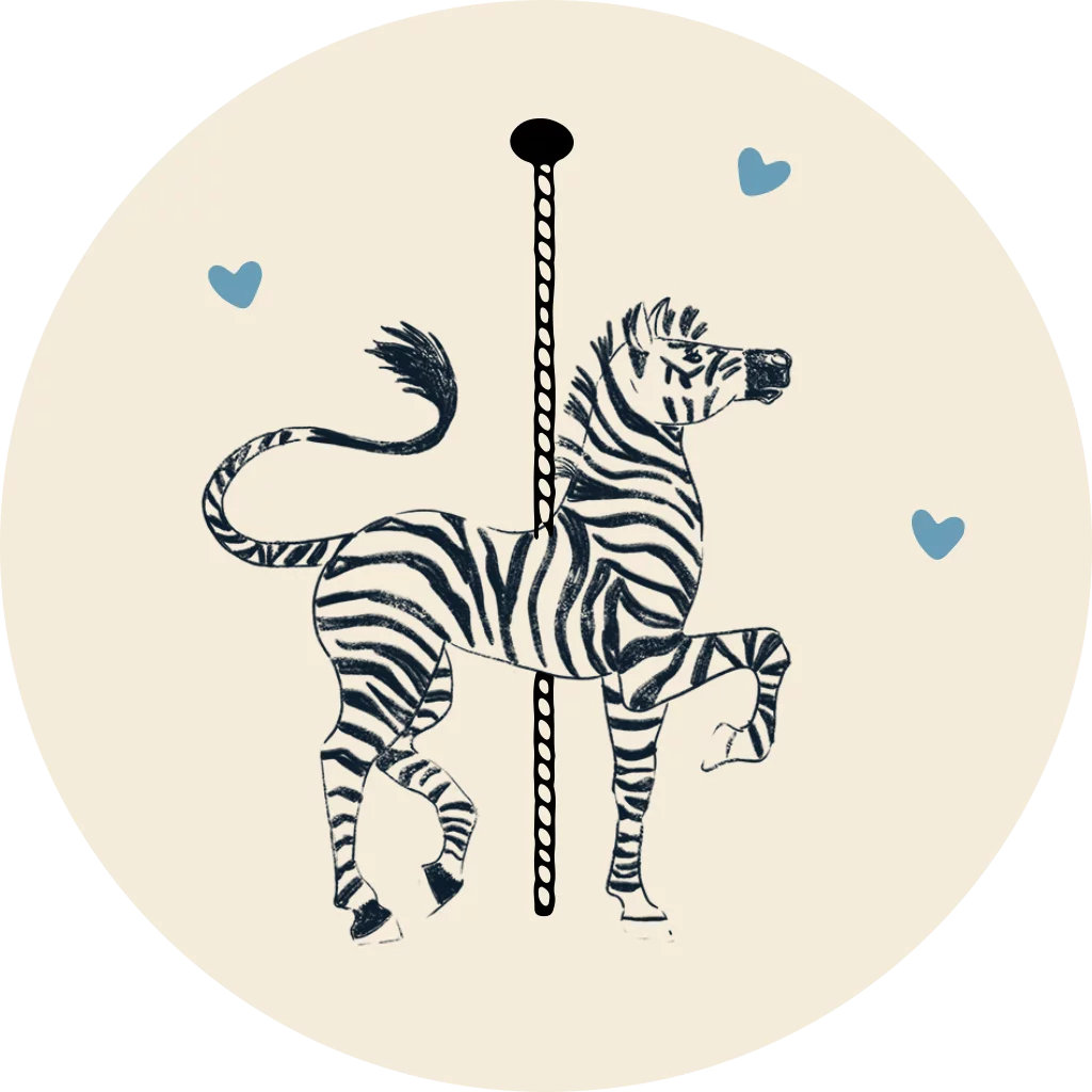 Sluitzegel met beige achtergrond en de zebra uit de carrousel.