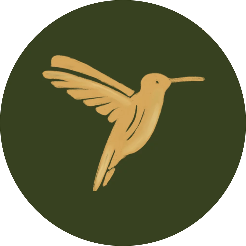 Sluitzegel met groene achtergrond en een gele kolibrie.