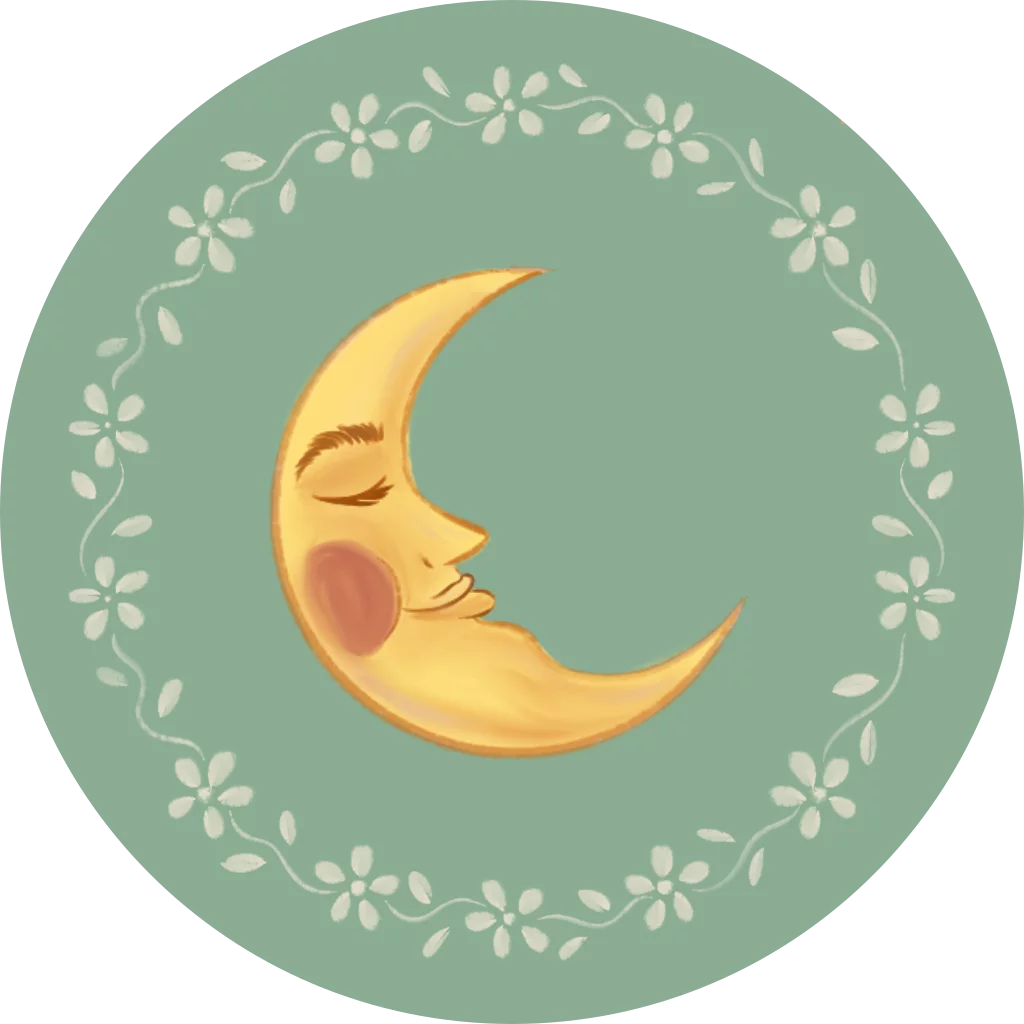 Sluitzegel met een maan en bloemetjes.