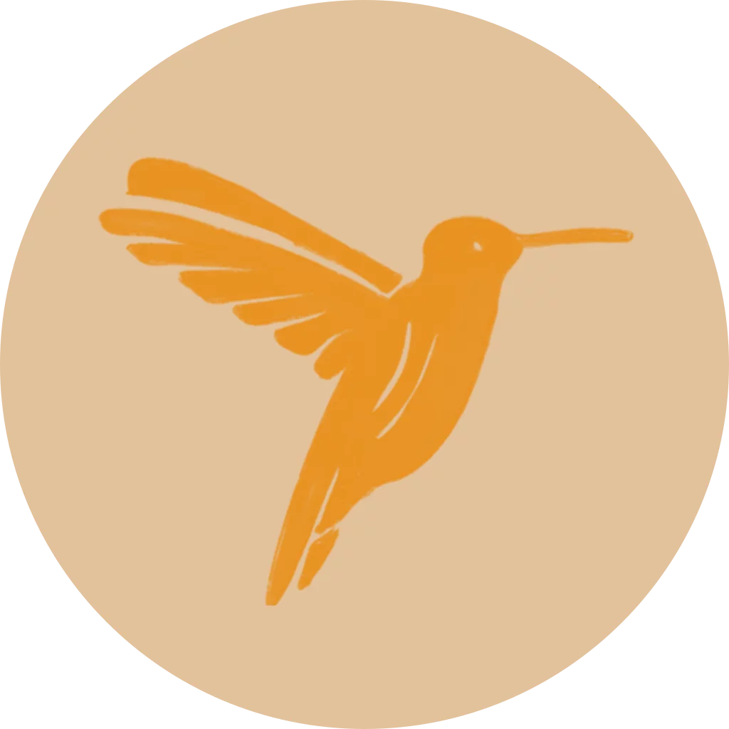 Sluitzegel met beige achtergrond en oranje kolibrie.