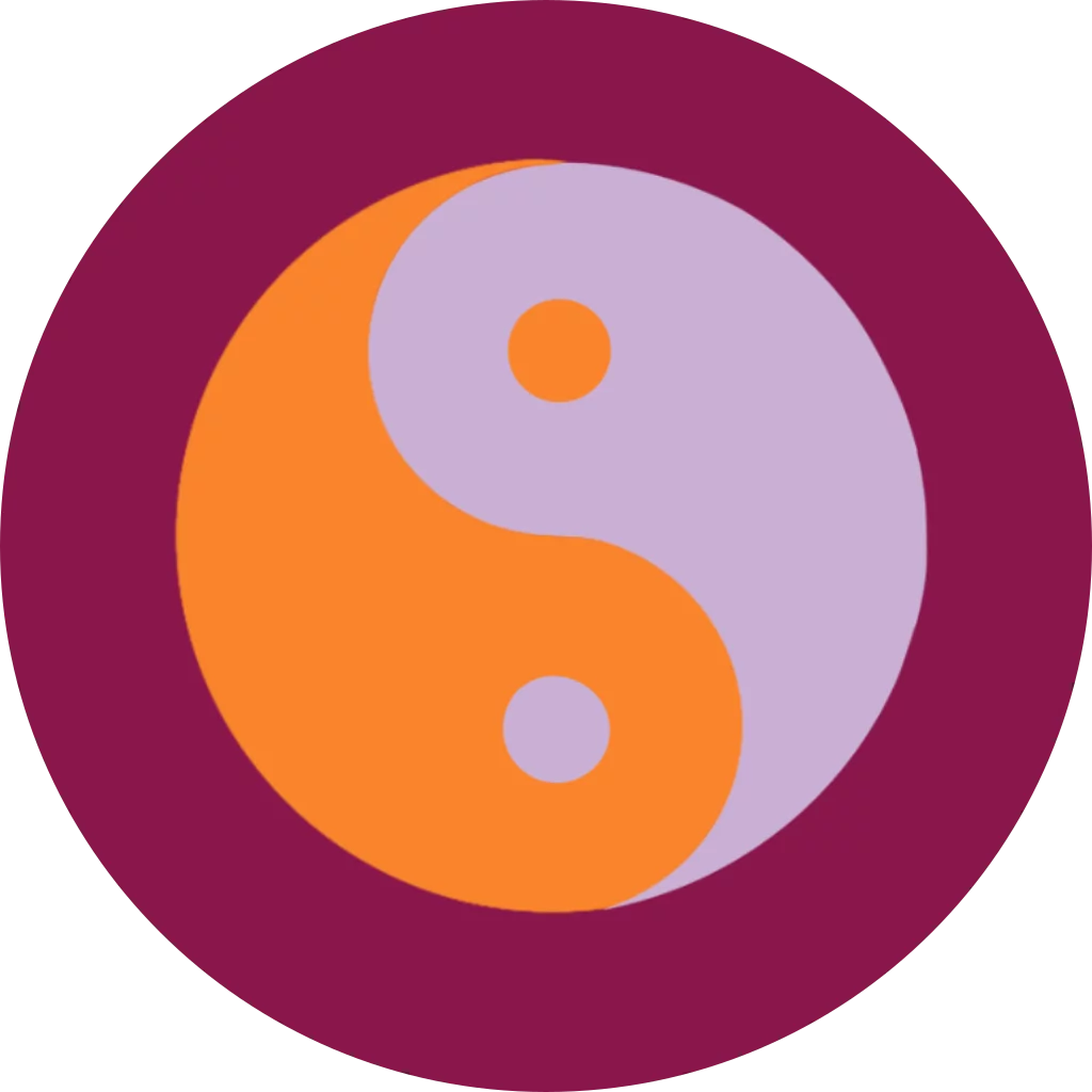 Sluitzegel met paarse achtergrond en yin yang in oranje met lila.