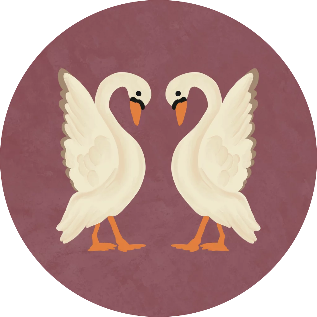 Sluitzegel met zwanen en roze achtergrond.