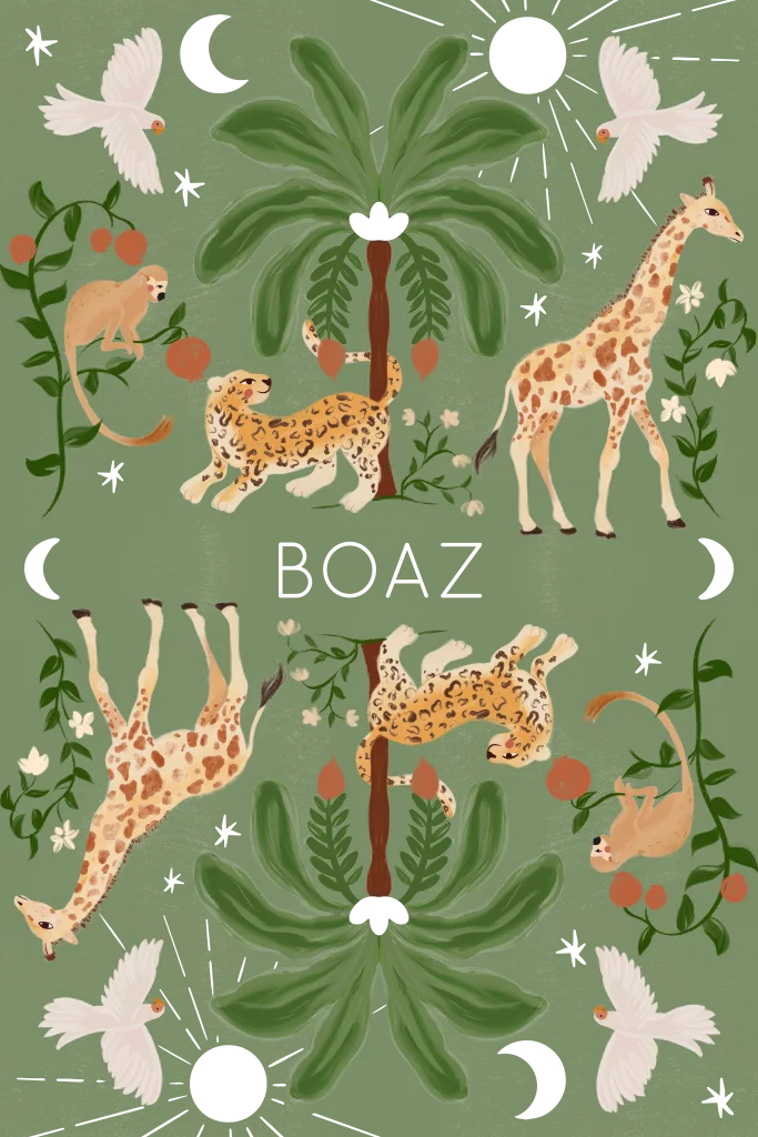 Een symmetrisch geboortekaartje met een jungle thema. Het geboortekaartje is ook verkrijgbaar in andere kleuren en vormen.