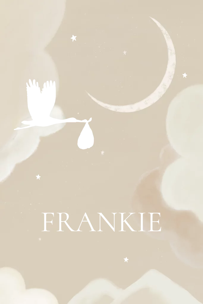 Een klassiek geboortekaartje met de ooievaar die volgens de mythe geluk en de kans op nieuw leven brengt. De neutrale beige kleur maakt het kaartje geschikt voor jongens en meisjes