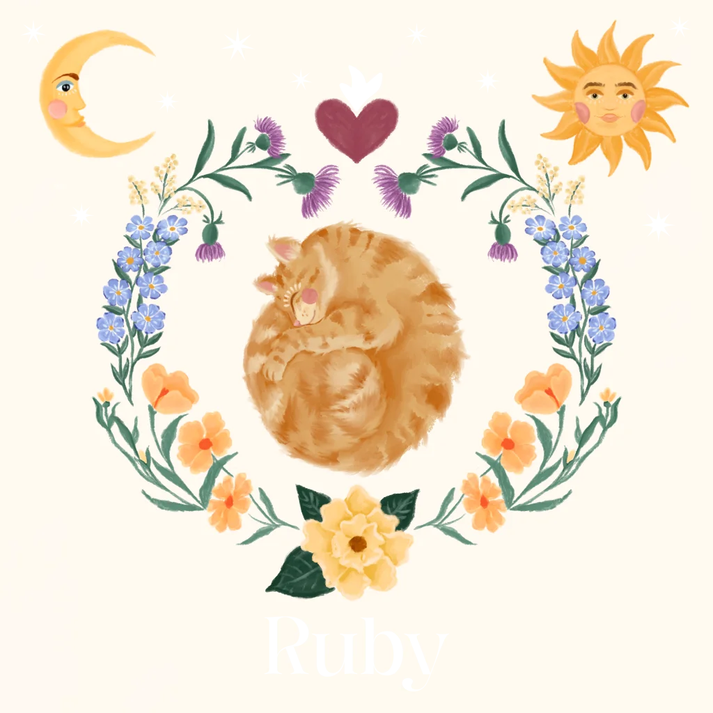 Dromerig geboortekaartje met slapende kat, pas het ontwerp naar wens aan in onze editor.