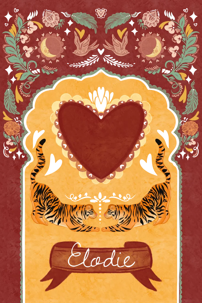 Het kaartje met de tijger is er in vele varianten. Zo kun je kiezen uit een versie met Yin Yang of een hart met optioneel het sterrenbeeld erin. Liever een andere kleur? In de editor kun je zelf de kleur aanpassen.