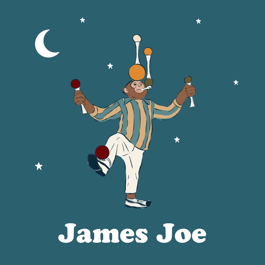 Een jonglerend aapje met op de achterkant een circustent. Naar wens kun je de achtergrondkleur van dit kaartje aanpassen.