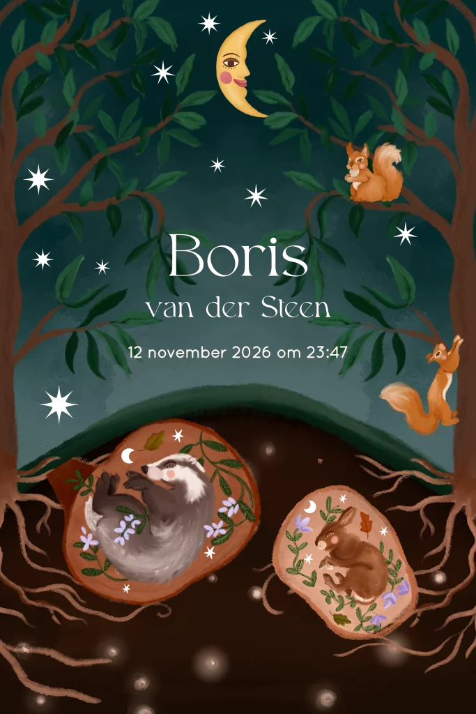 Geboortekaartje dieren in het bos groen