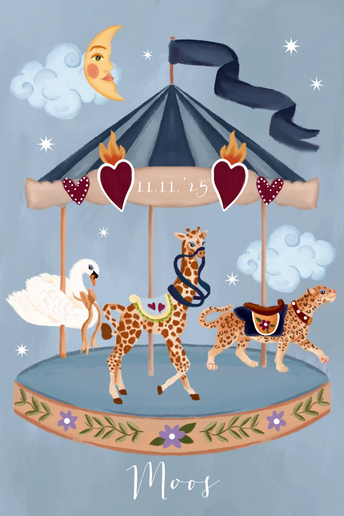 Een nieuwe variant op de carrousel met dieren is beschikbaar. Het kaartje is in een nieuwe jasje gestoken. Deze speelse tekeningen passen perfect bij het thema en de dieren.