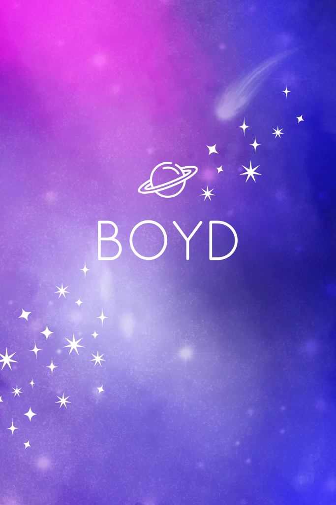 Een geboortekaartje vol sterren met het thema space. Het kaartje is er ook in een paarse uitvoering.