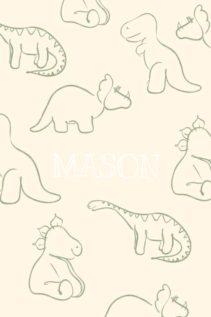 Een echt stoer jongens kaartje met groene dinos en de naam in goudfolie.