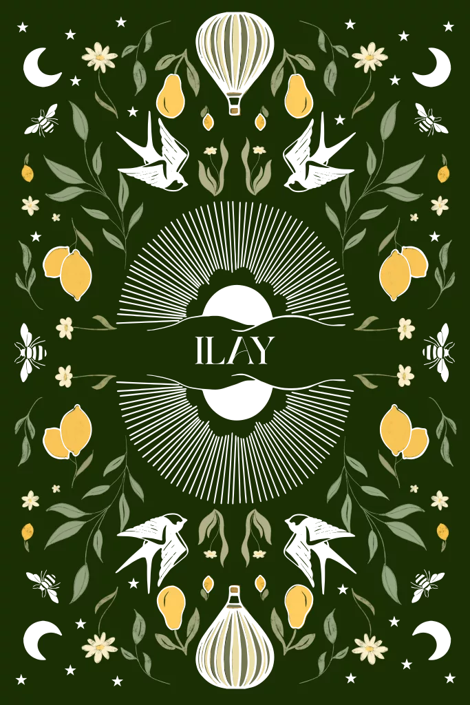 Het ontwerp waar het voor Pinélo allemaal mee begon. Het geboortekaartje voor onze zoon is nu ook beschikbaar in de collectie. Een symmetrisch kaartje met de zon, maan, citroenen, peren, bloemen en luchtballonnen.