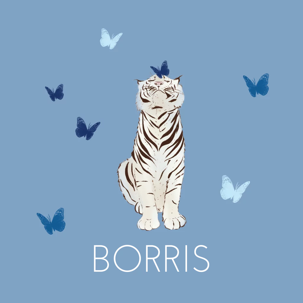 Geboortekaartje witte tijger en vlinders blauw