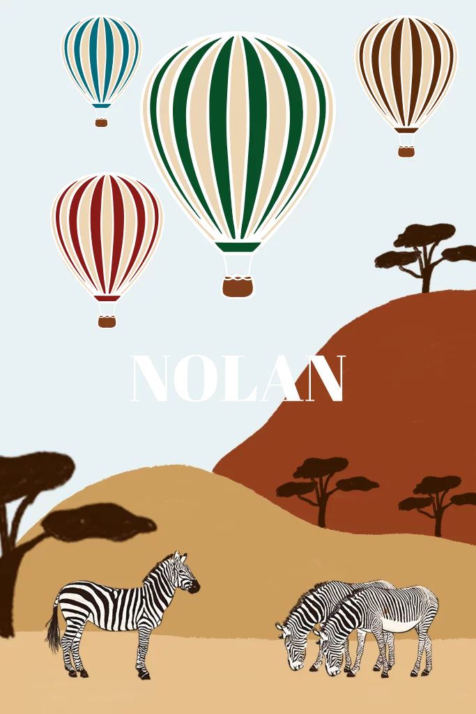 Een kleurrijk geboortekaartje met een Afrikaans tafereel. De zebra's worden vergezeld door kleurrijke luchtballonnen. Liever andere kleuren? Met de editor kun je zelf de kleuren aanpassen.