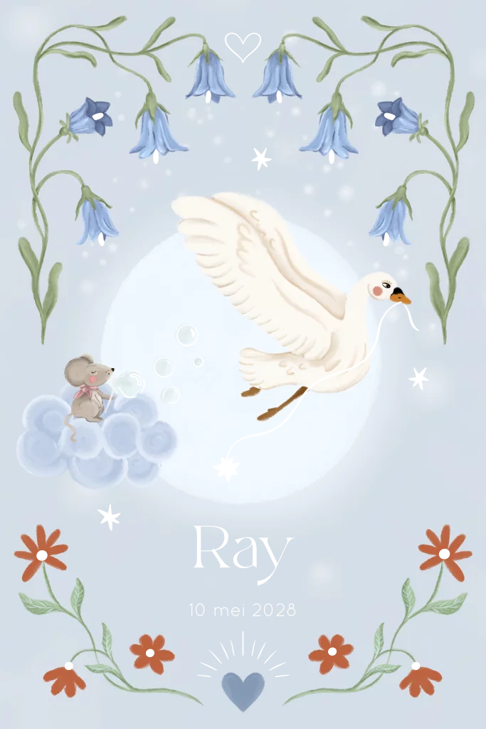 De zwaan vliegt je tegemoet. Omringd door bloemen en kleine gouden belletjes geblazen door een schattig muisje.