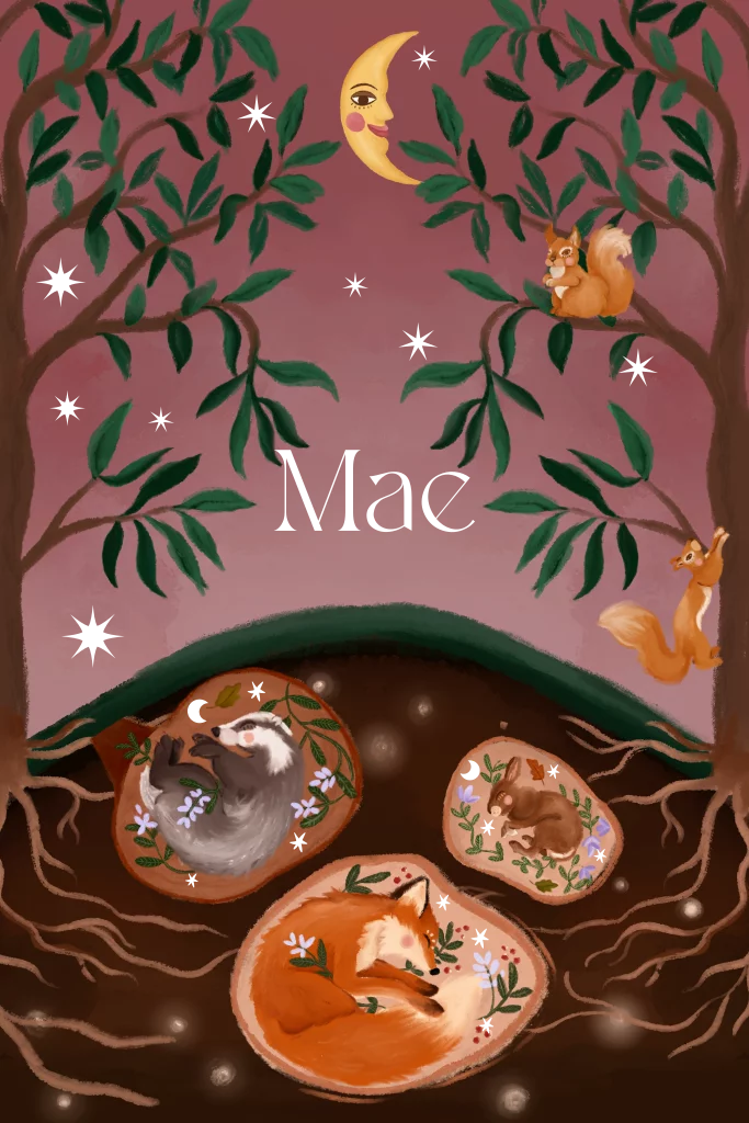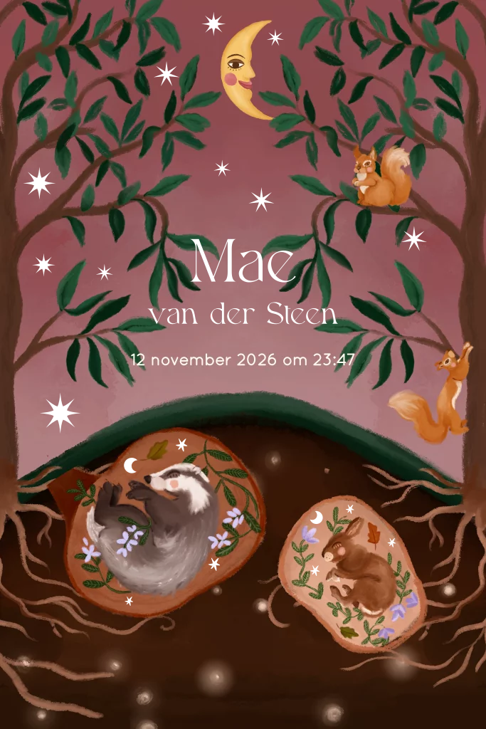Neem een kijkje in het leven in het bos. Een kaartje met bosdieren en vlinders onder het maanlicht. De meeste zijn al in diepe winterslaap.